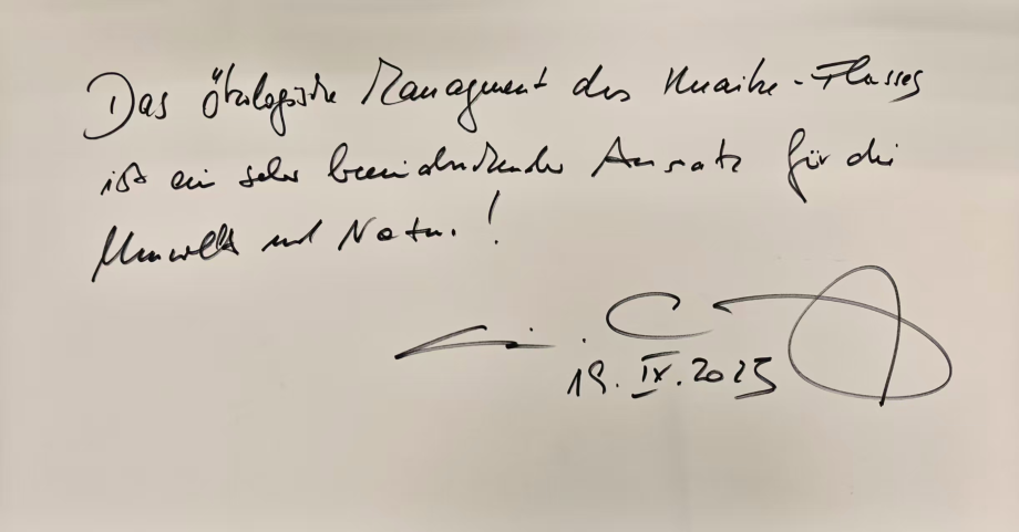 武尔夫曾于2010年6月至2012年2月担任德国总统,现任全球中小企业联盟全球主席,2022年荣获中国政府友谊奖。2023年9月,在中德(蚌埠)投资贸易合作交流会期间,武尔夫专程参观“靓淮河”工程,对蚌埠市坚持生态优先、绿色发展的理念和实践成效给予高度评价,欣然题词“淮河生态综合治理,一项伟大的工程,造福于民”。